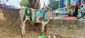 It was also learnt that a cow painted in green-white-green one side and on the head with APC inscription at the other side has been slaughtered for barbecue as the men in charge were spotted chopping the meat into pieces.