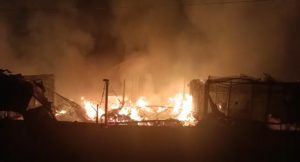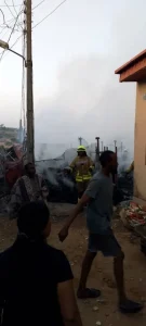 The whole shops were already razed before the arrival of men of the Federal Fire Service from EFCC and Sauka Station arrived two hours later to put the fire off.